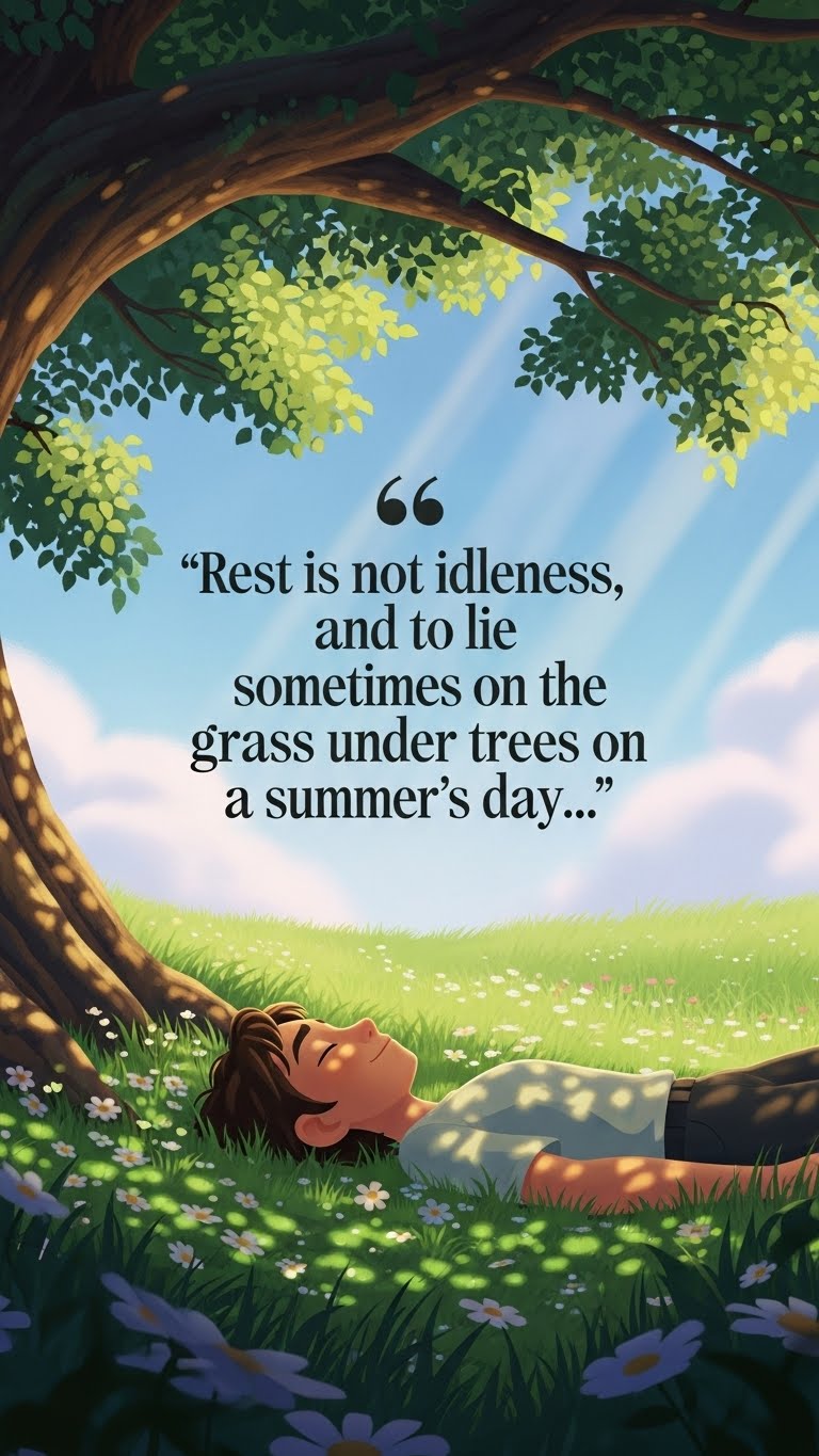 "Rest is not idleness, and to lie sometimes on the grass under trees on a summer's day, listening to the murmur of the water, or watching the clouds float across the sky, is by no means a waste of time."