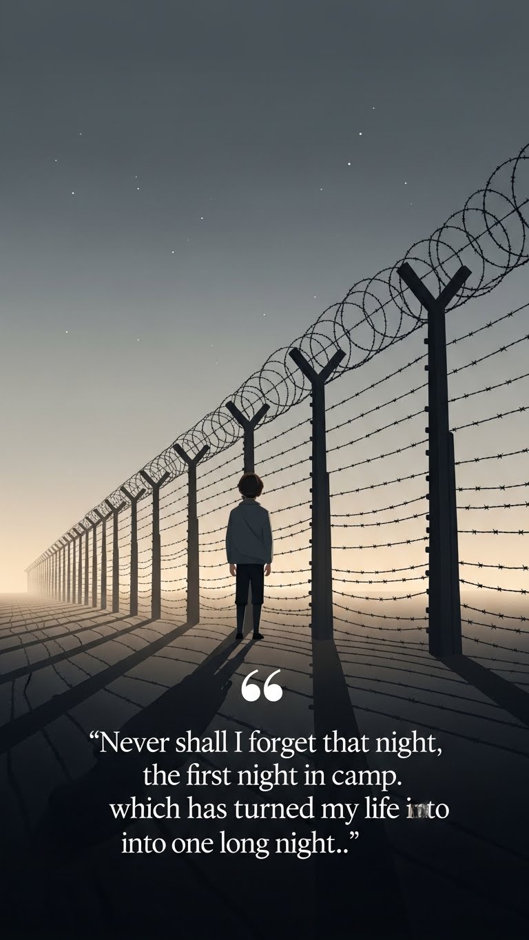 Explore 37 powerful and moving quotes from Elie Wiesel's pivotal memoir, Night, focusing on themes of lost faith, survival, and the profound duty of memory.