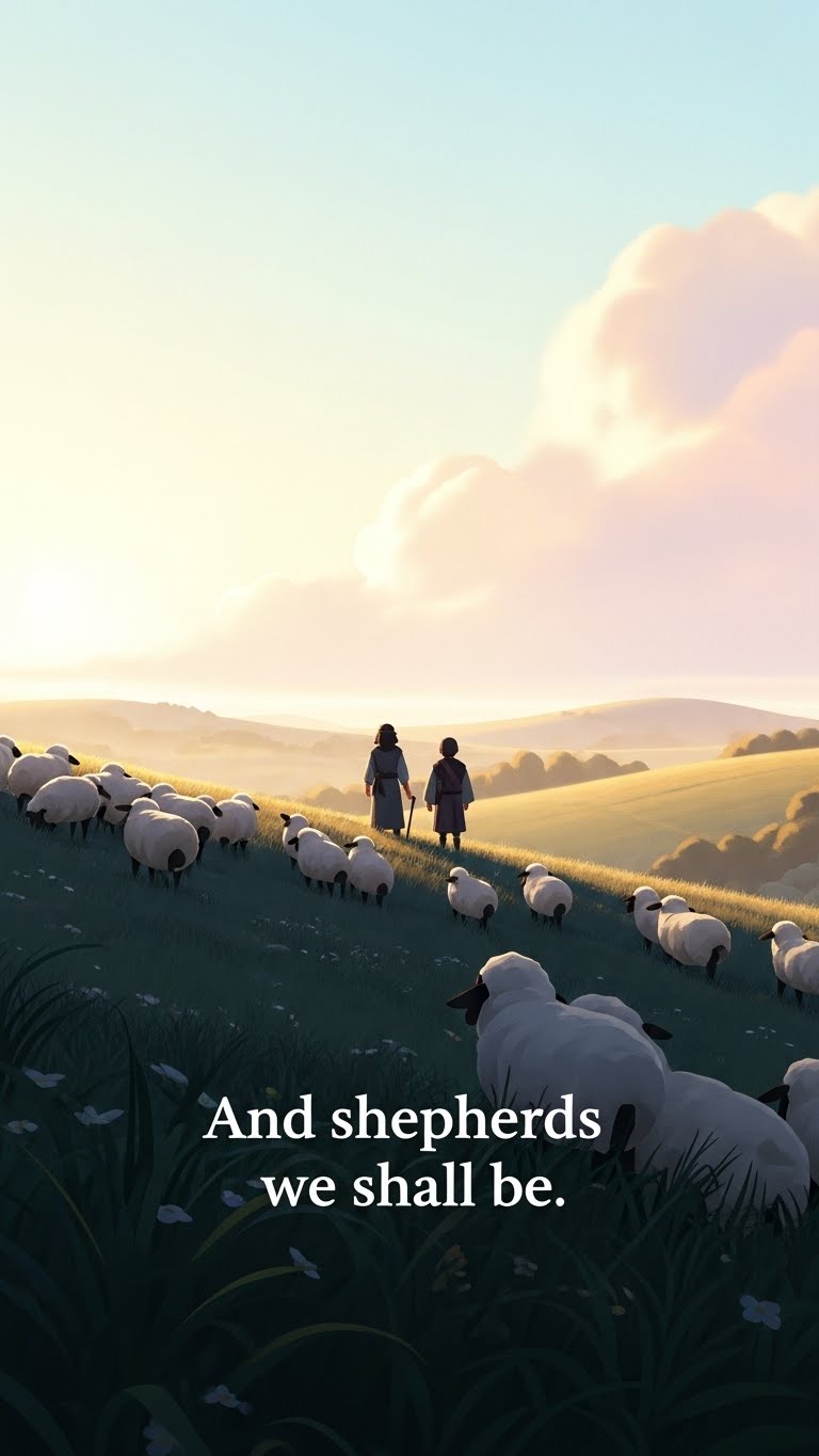 "And shepherds we shall be. For thee, my Lord, for thee. Power hath descended forth from Thy hand. Our feet may swiftly carry out Thy commands. So we shall flow a river forth to Thee. And teeming with souls shall it ever be."